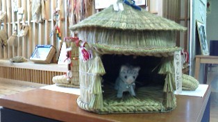 ふるさと村で展示してました。 わらで編んだお家です。 昔のワンちゃんはこんな感じで 利用していたのでしょうか? |
