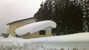 受水槽タンクの上に積もった雪が 1.2m位になりました 降ろさないと潰れちゃう・・・ 昨日の全国ニュースで雪の多さに 中継が出でおりました 見ました? |