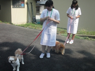平成高等学校の生徒さんが インターシップでいらっしゃいました。 今日はお散歩をお手伝い頂きました。 みるくとリクはとても嬉しいと申しておりました。 また、お散歩してね |